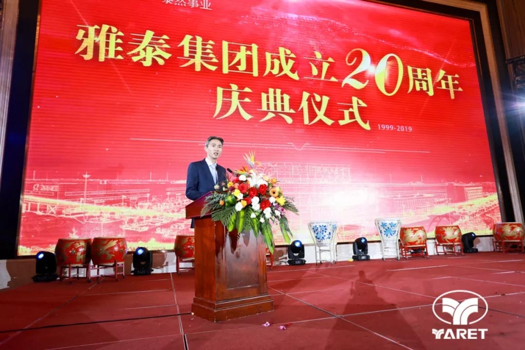 2019年12月18日17時18分,雅泰集團二十周年慶典儀式及晚宴于江蘇省宿遷市恒力國際大酒店隆重舉行,千余人歡聚一堂,共同祝福雅泰二十歲生日快樂!