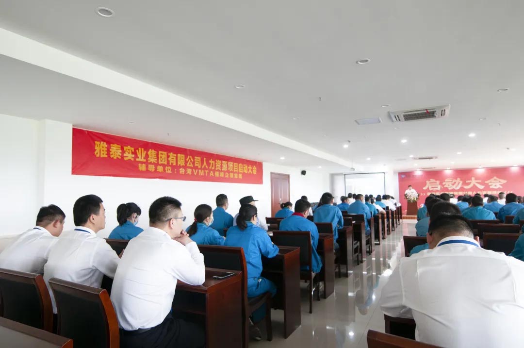 為提升企業(yè)整體管理水平,創(chuàng)造更為優(yōu)質(zhì)的人才環(huán)境,5月21日上午,集團特邀臺灣VMTA健峰企管集團導(dǎo)入人力資源輔導(dǎo)項目,在江蘇雅泰召開雅泰實業(yè)集團人力資源輔導(dǎo)項目啟動大會。