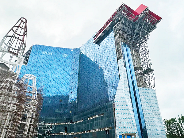 雅泰集團(tuán)承建上海臨港冰雪北區(qū)幕墻整體制作及建設(shè),本項目為菠蘿面異形設(shè)計,充滿現(xiàn)代感的外立面,把冰雪世界的晶瑩閃耀充分展現(xiàn)。與之相匹配的鋁幕墻板的結(jié)構(gòu)復(fù)雜,加工難度較大,全異型、超大、超寬、超長鋁板,多數(shù)板長6-7米,且角度尖銳精度要求非常嚴(yán)格。面對高難度重點(diǎn)工程,雅泰集團(tuán)快速成立項目攻艱突擊隊,選調(diào)管理、設(shè)計、加工精英,結(jié)合理解冰雪項目設(shè)計特點(diǎn),最大程度達(dá)成設(shè)計師初衷。加工團(tuán)隊對異型板件進(jìn)行優(yōu)化拆解,分件加工,再進(jìn)行一體化工廠組裝集成。同時集團(tuán)擁有行業(yè)內(nèi)體量、規(guī)模均在前列,全長700米的進(jìn)口先進(jìn)噴涂設(shè)備,充分滿足超大、超長、超寬鋁板的氟碳漆面噴涂完成。