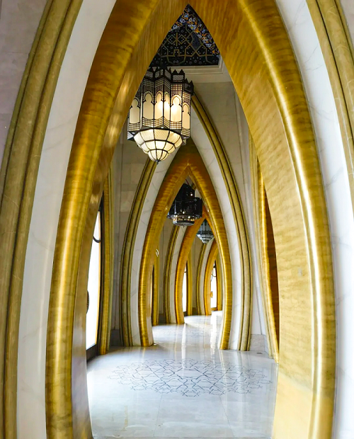外飾面通過(guò)雅泰集團(tuán)生產(chǎn)的黃褐色金屬光澤的鋁單板表達(dá)出輕盈、時(shí)尚的品質(zhì),內(nèi)核金色磚紋肌理表達(dá)出濃烈的新疆地域文化特征,整個(gè)建筑如盛開的金色雪蓮。