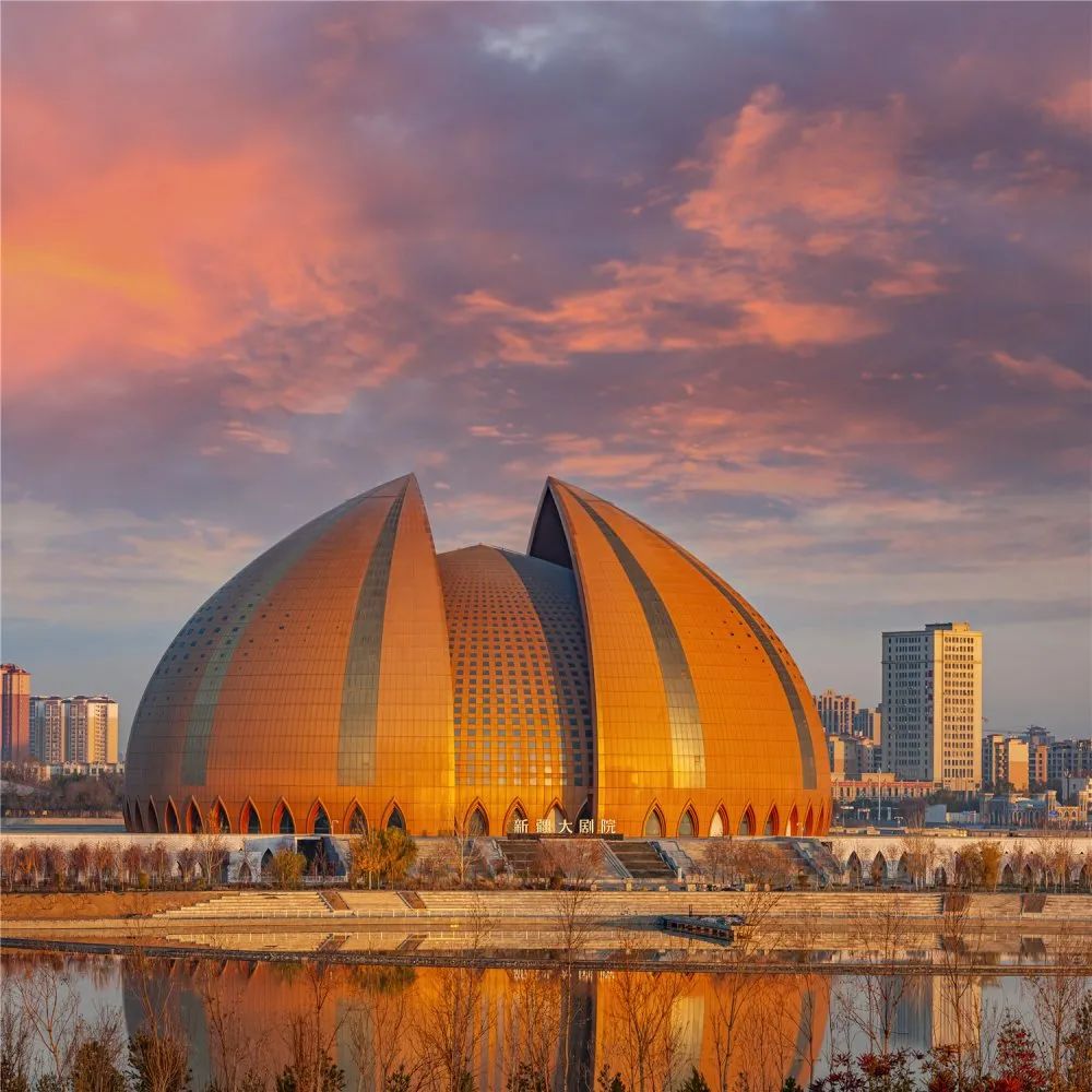 座落于昌吉的新疆大劇院,是中國(guó)目前最具民族文化特征的標(biāo)志性建筑,也是印象西域國(guó)際文化旅游產(chǎn)業(yè)園的核心建筑。主體坐落在平緩的臺(tái)基上,以盛開的天山雪蓮為原型,通過(guò)抽象與創(chuàng)新的設(shè)計(jì)手法,形成里外套層的穹頂造型主體形象。
