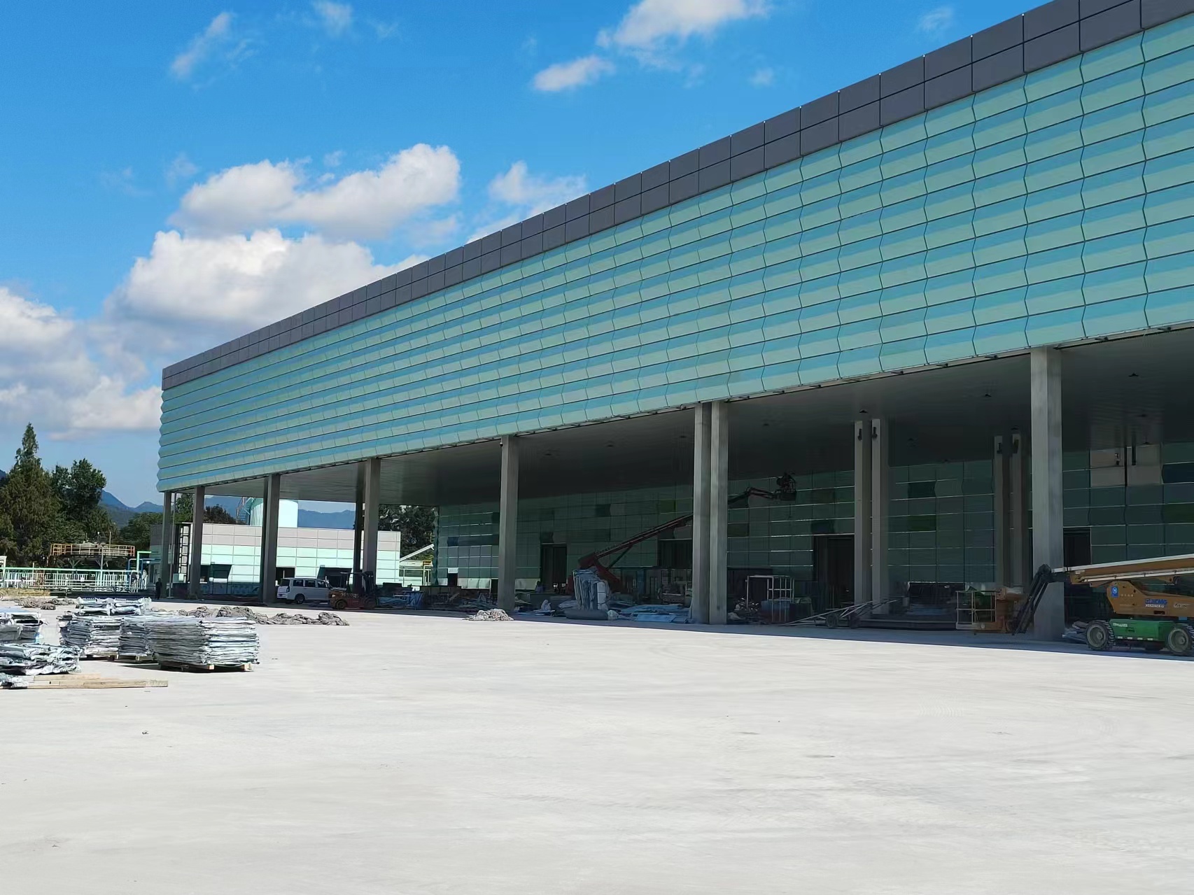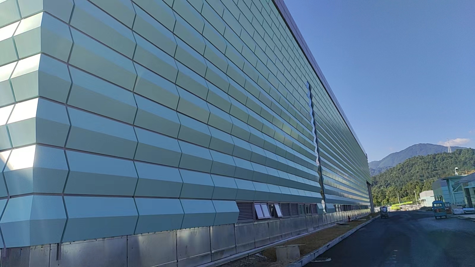 在風(fēng)景如畫的黃山腳下,雅泰鋁單板幕墻作品,農(nóng)夫山泉生產(chǎn)基地目前正在有序施工中,不禁讓人想到那句:我們不生產(chǎn)水,我們只是大自然的搬運(yùn)工。