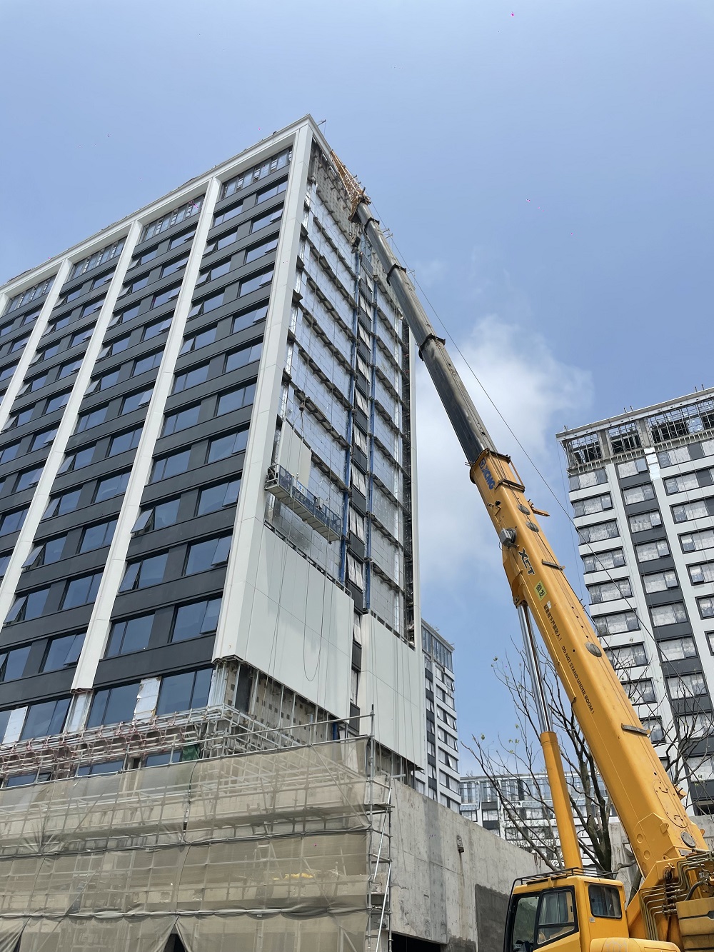 為保障幾萬名研發(fā)人員的生活配套,緊鄰華為研發(fā)中心的上海西岑單身公寓項(xiàng)目目前也基本完成。項(xiàng)目包含35棟單體建筑和1棟短租式公寓,公寓進(jìn)度非常迅速,外墻采用了高效集成的裝配式單元金屬幕墻系統(tǒng)。裝配式幕墻污染少、節(jié)能環(huán)保,可減少90%以上的建筑垃圾 。同時(shí)由于裝配式幕墻二次結(jié)構(gòu)已施工前置,所以相對(duì)傳統(tǒng)結(jié)構(gòu)安裝,工期會(huì)提前10%-15%。